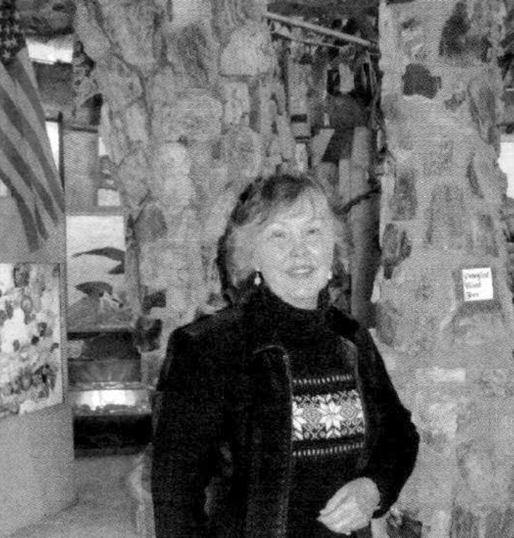 The walls are dotted with rocks, crystal and fossils. Pillars of petrified wood provide support, and paintings and mosaics line the walls and recesses of one of the most unusual buildings in Linn County.